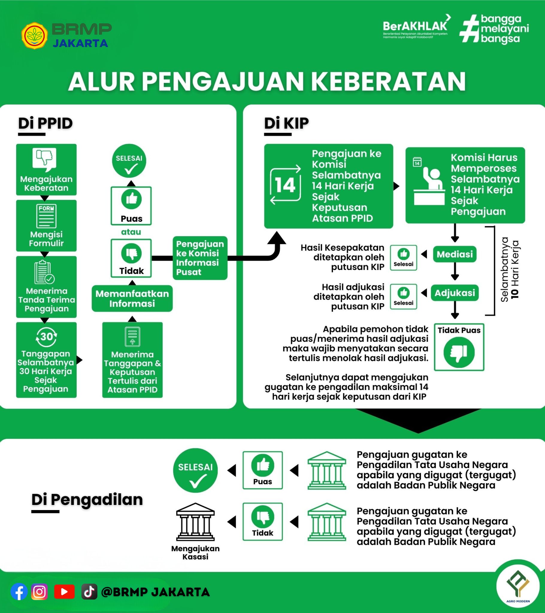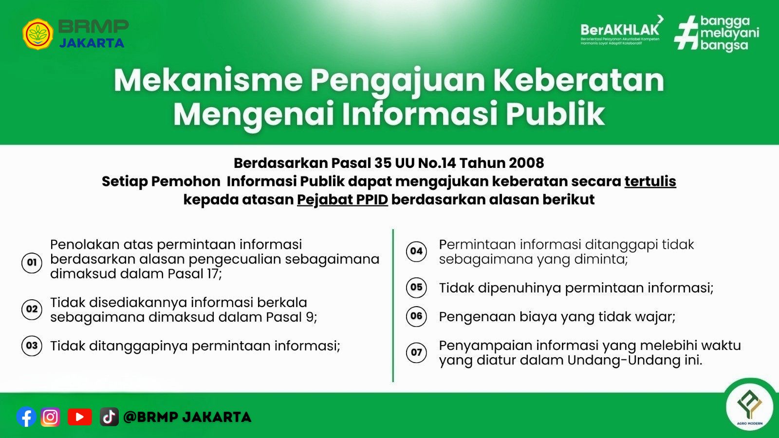 Setiap pemohon informasi publik dapat mengajukan keberatan secara tertulis kepada atasan Pejabat Pengelola Informasi dan Dokumentasi dengan alasan sebagaimana ditetapkan dalam pasal 35 Undang-Undang Nomor 14 Tahun 2008. Keberatan diajukan oleh Pemohon Informasi Publik dalam jangka waktu paling lambat 30 (tiga puluh) hari kerja setelah yang bersangkutan menemukan alasan keberatan.