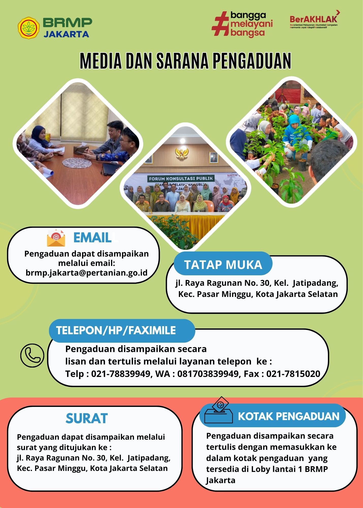 Mekanisme penanganan pengaduan masyarakat BRMP Jakarta melalui Sistem Pengelolaan Pengaduan Pelayanan Publik Nasional (SP4N) dengan aplikasi Layanan Aspirasi dan Pengaduan Online Rakyat disingkat LAPOR! melalui beberapa kanal pengaduan.